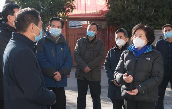 在响堂街居委会,她询问了该村开展的“敲门行动”,即每天两次上门测体温等工作内容。在孔家坡社区,了解五个工作专班、党员突击队的情况。