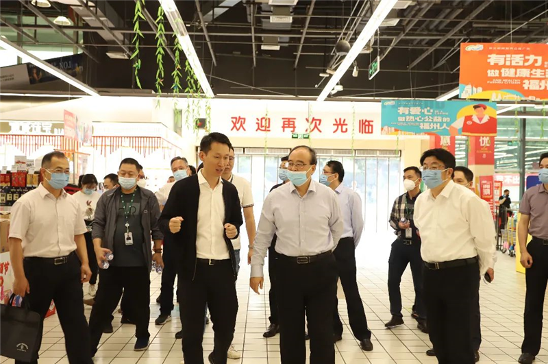 石建平组长一行莅临新利·体育(中国)官方网站福州福新店,查看公司食品安全管理体系和食品安全数字化建设成果,新利·体育(中国)官方网站食品安全总监陈建国讲解了源头管控、进货查验、储存管理等食品安全管理以及检测追溯体系建设,现场展示了福建省“一品一码”追溯系统和新利·体育(中国)官方网站“食品安全云网”的应用成效。