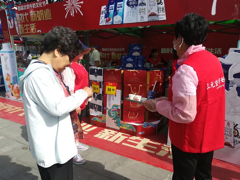 ▲活动当日,营养专家现场答疑解惑,乳企品牌邀请消费者试吃试饮。