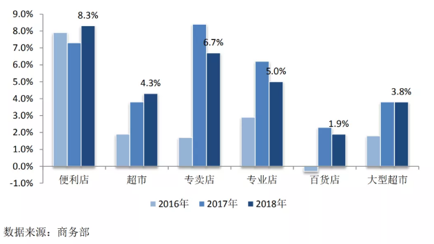图/2016-2018年商务部零售业典型统计调查分业态增速