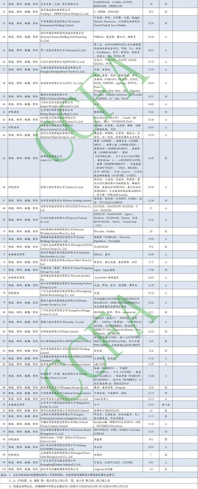 据悉,此次榜单是中国连经营协会参照国家统计局的分类,借鉴国际经验和市场实际情况,将时尚零售企业分为:服装服饰鞋履家纺类、金银珠宝首饰类、护肤美妆类进行汇总分析,统计研究了上市集团的财务报告、企业提报数据,按照各企业2018年营业收入统计排列出2018年中国时尚零售企业百强榜。
