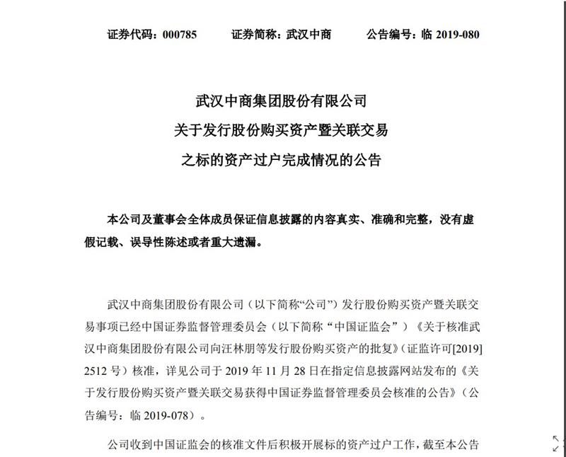据公告内容显示,2019年 12 月4日,北京市东城区市场监督管理局换发的营业执照,居然新零售 100%股权已登记至武汉中商公司名下。
