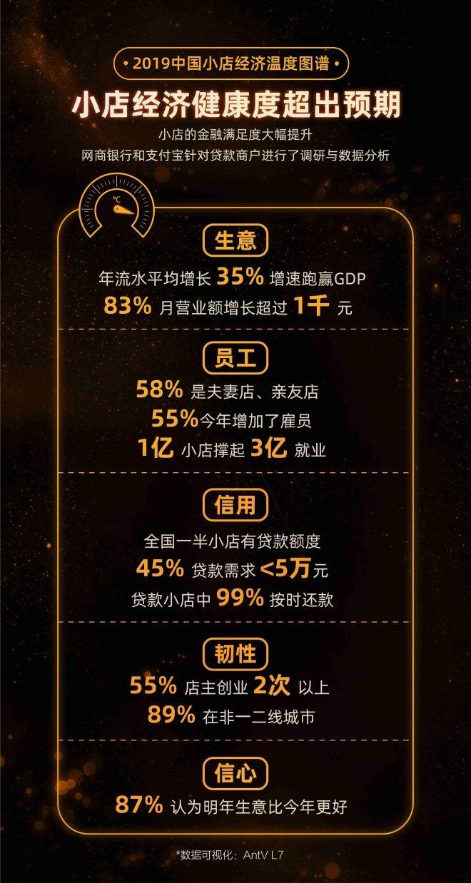 12月19日,《2019中国小店经济温度图谱》发布(以下简称小店图谱)。网商银行和支付宝的分析显示,过去一年,以网店、街边店、路边摊等等组成的各类中国小店,无论是经济活力,还是健康程度,均超出预期:
