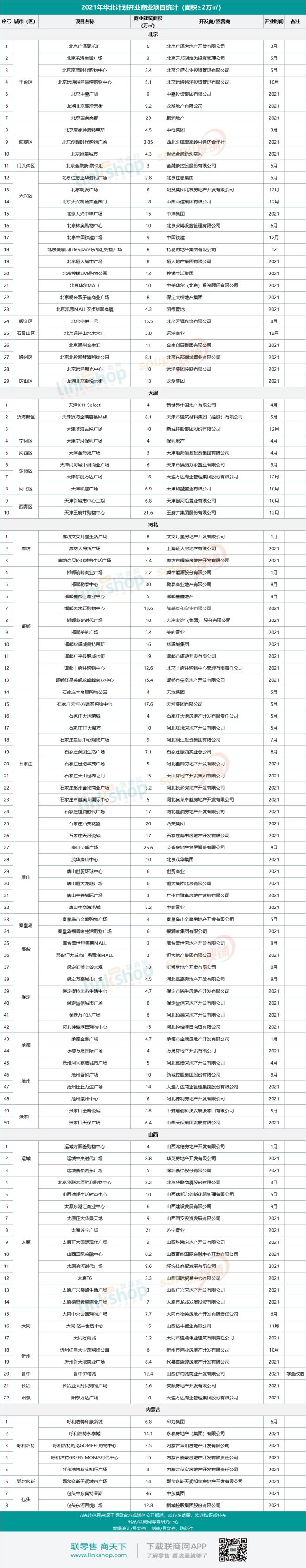 华北2021年计划新开119个购物中心 京晋冀领跑