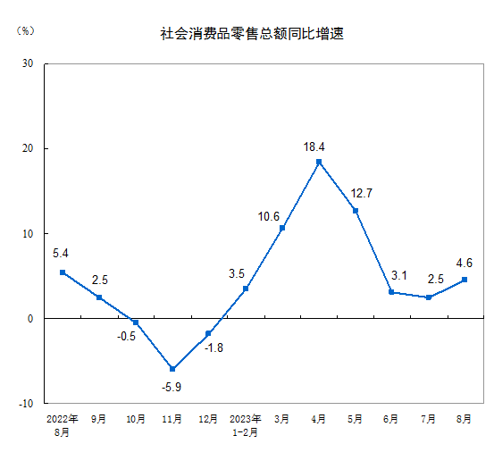 8月份,社会消费品零售总额37933亿元,同比增长4.6%。 ...
