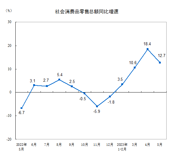 5月份,社会消费品零售总额37803亿元,同比增长12.7%。 ...