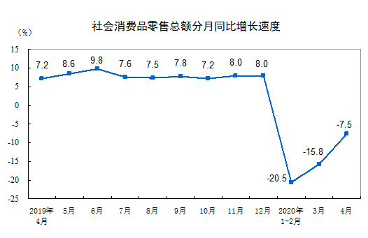 2020年1-4月份社会消费品零售总额下降16.2%