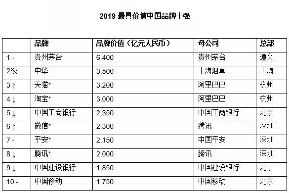 2019胡润品牌榜200强:天猫第三 海底捞上榜