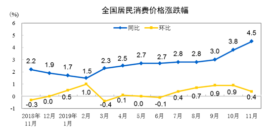 11月全国居民消费价格同比上涨4.5%
