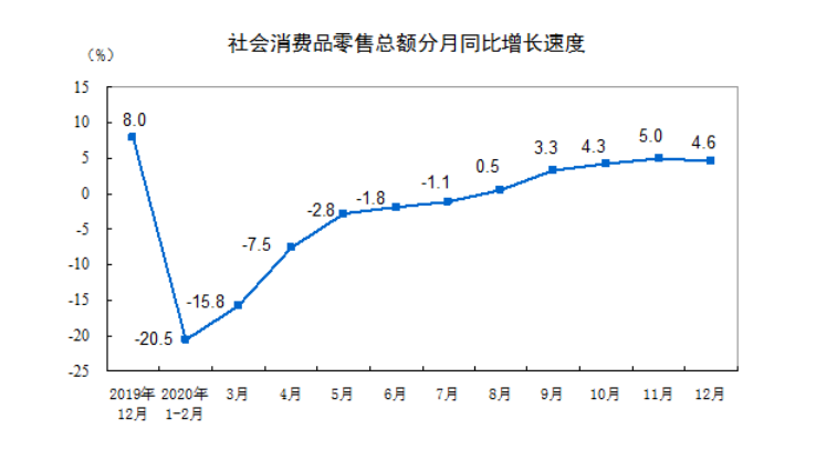 2020年12月份社会消费品零售总额增长4.6%