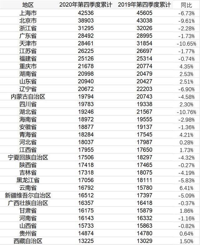 2020年,共有11个省份的居民人均消费支出超过2万元,分别是上海、北京、浙江、广东、天津、江苏、福建、重庆、湖南、山东和辽宁。 ...