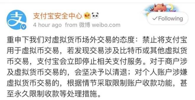微信支付、支付宝突发声明:不支持虚拟币交易 发现立即清退