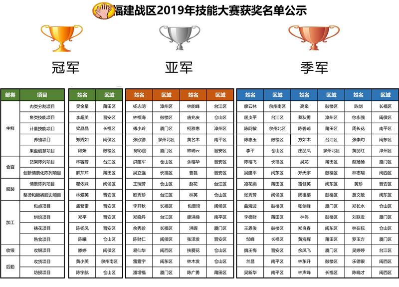 新利·体育(中国)官方网站福建战区总经理陈颖总结道,永辉员工技能大赛就像是“奥运会”,代表着员工追求更高、更快、更强的精神,福建战区每年举办员工技能大赛,这是展现员工技能风采的平台,也是一个交流的平台,我们发现许多的人才从中间涌现出来,永辉“传帮带、交叫教”的企业文化让永辉的人才不断的推陈出新。永辉一直秉承着坚守主业、坚守定位、坚守文化的理念,让永辉服务更精细,让团队更加的活跃,让我们的企业更加健康长效的成长。