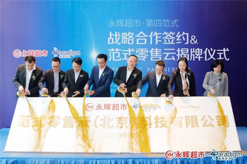 永辉执行副总裁吴光旺,第四范式执行副总裁梁军签署了战略合作协议,出席本次签约仪式的八位领导共同揭牌,宣布设立合资子公司范式零售云(北京)科技有限公司(下文简称“范式零售云”),组建联合团队共同建设面向零售业的科技赋能平台。