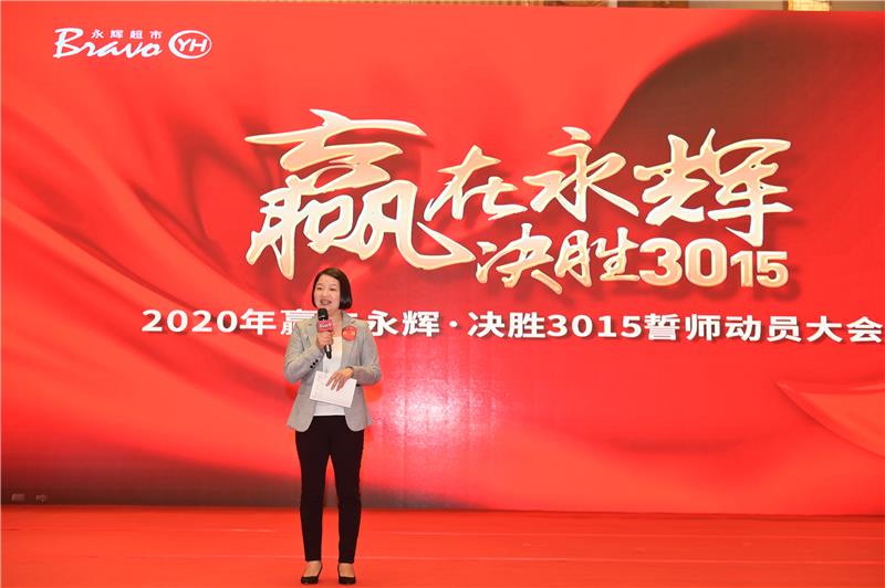 大会伊始,财务服务平台合伙人林利骞对3015期间应达成的指标进行了具体分析说明。他对目标进行了分解,从Bravo店、创新业务等不同业态进行说明,根据食百、生鲜、加工、服装不同的商行的具体情况,针对性的解读指标要求。