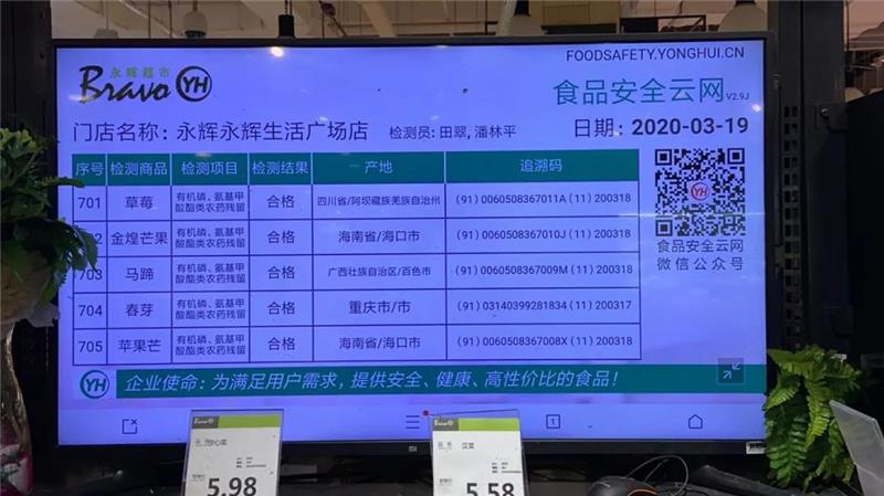 “现在到永辉来买菜,都习惯抬头看看这块屏幕,看了这些信息感觉很放心。”据了解,截至2019年底,新利·体育(中国)官方网站已在全国门店启用了1374块“食品安全云屏”。通过这些“食品安全云屏”,消费者可以查看当日上架销售的农产品包括检测商品、检测项目、检测结果、产地、追溯码等公示信息。