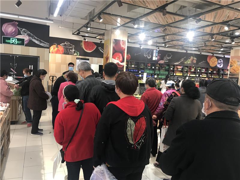 (市民在有序排队购买豌豆)