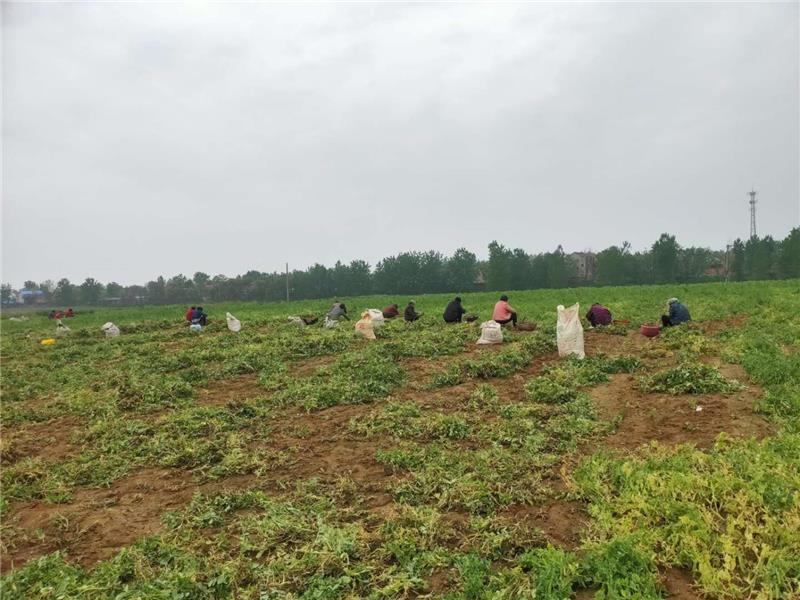 (村民在田间采摘新鲜的豌豆)