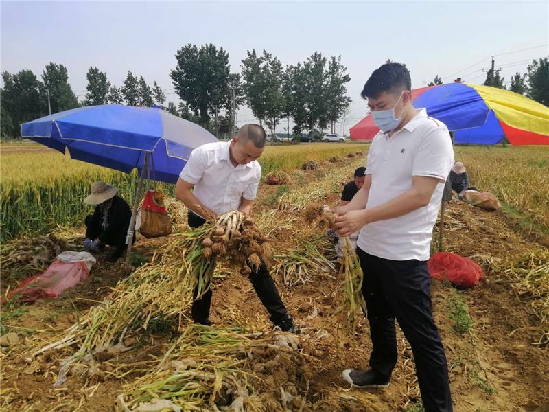 5月21日,河南新利·体育(中国)官方网站生鲜采购负责人席晨杰、蔬菜采购负责人曹吉祥驱车来到距离公司50公里外的中牟县,帮助这里蒜农解决滞销在田间地头的大蒜。