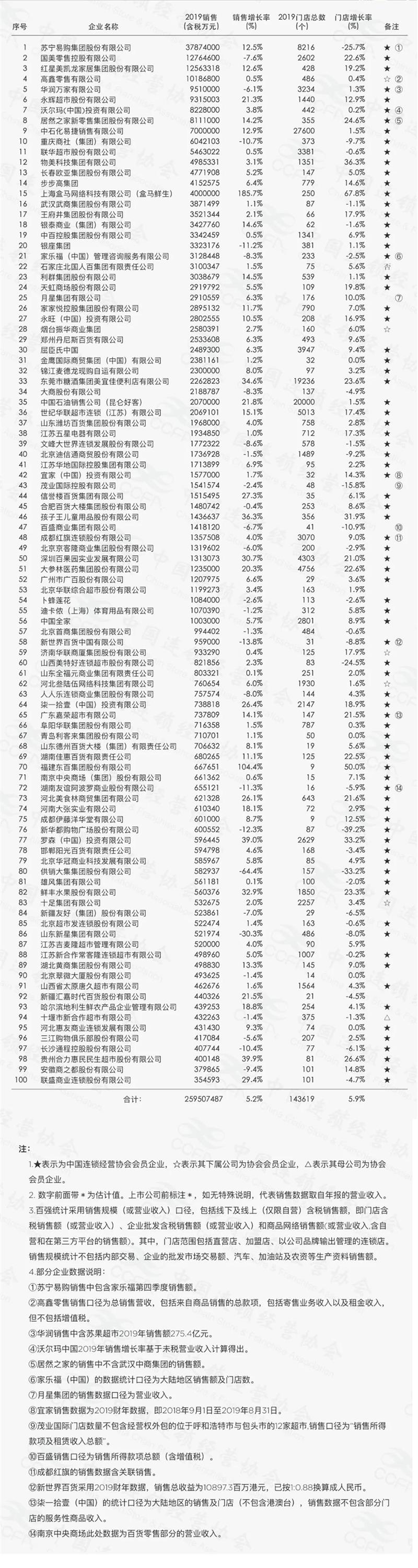 6月2日,中国连锁经营协会发布“2019年中国连锁百强”榜单,数据显示,新利·体育(中国)官方网站2019年全年销售9315003万元(含税),销售增长率达21.3%,位居百强榜单第六位,也是前十强中销售同比增长最快的企业。