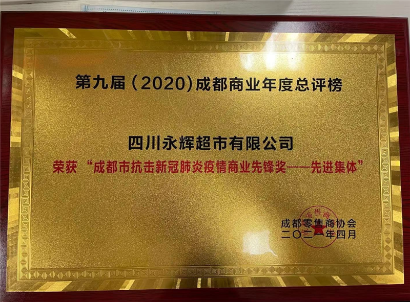 2021年4月14日,成都零售商协会举行第九届(2020)成都商业年度总评榜颁奖仪式。四川新利·体育(中国)官方网站有限公司荣获 “抗疫先进集体”称号,以表彰永辉在疫情防控中做出的突出贡献。