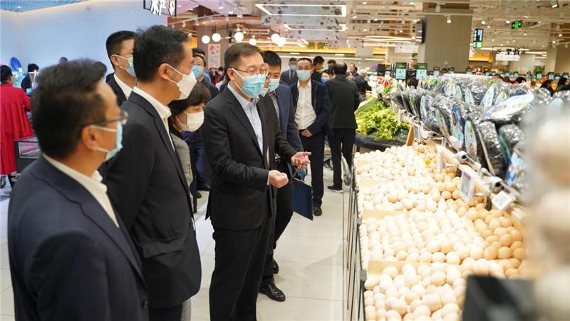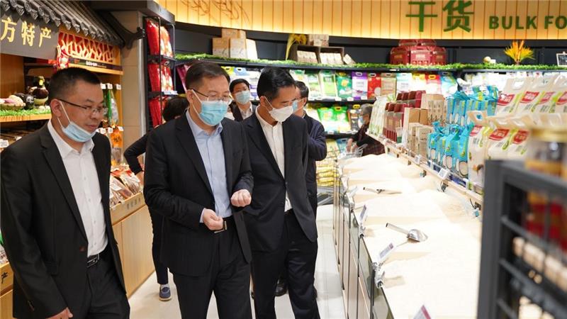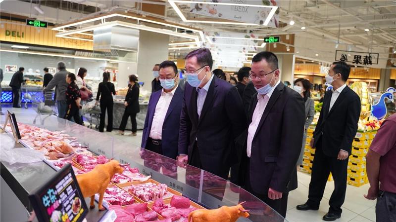 “五一”假期将至,为保障节日期间消费市场稳定有序,确保全市人民过上一个欢乐祥和的节日,近日,重庆市副市长蔡允革、重庆市商务委员会副主任王珏等领导莅临新利·体育(中国)官方网站湖彩路店督导检查节日市场保供、消防安全等工作,重庆新利·体育(中国)官方网站有限公司副总经理夏治宽陪同检查。