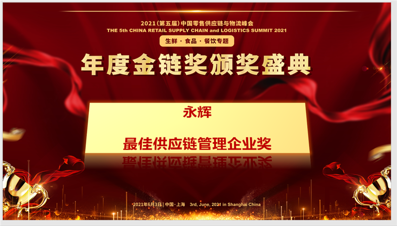 6月3日,第五届中国零售供应链与物流峰会于上海举行。会上,永辉获得年度金链奖颁奖盛典颁发的“最佳供应链管理企业奖”。