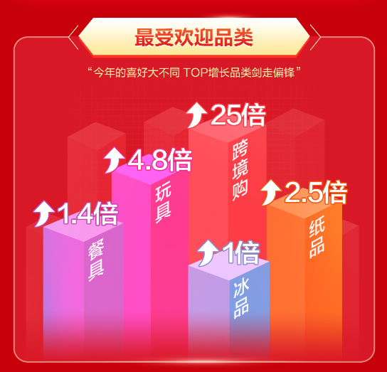 跨境购、玩具、纸品、餐具及冰品成为永辉618最受欢迎的品类,尤其是跨境购业务,增长达25倍。