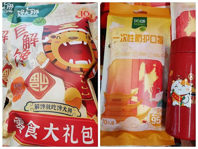 值得一提的是,新年新气象,永辉自有品牌玩转国潮,打造了虎年焕新包装,并携手故宫、宫猫推出新春IP联名系列产品。近一米高的馋大狮零食大礼包、优颂宫猫保温杯、优颂“我爱你 中国”一次性印花防护口罩等商品被用户买回家以后,充分发挥了 “打卡”分享的社交效应,在微博、抖音、小红书等平台上频繁露出,被标记为心仪年货。
