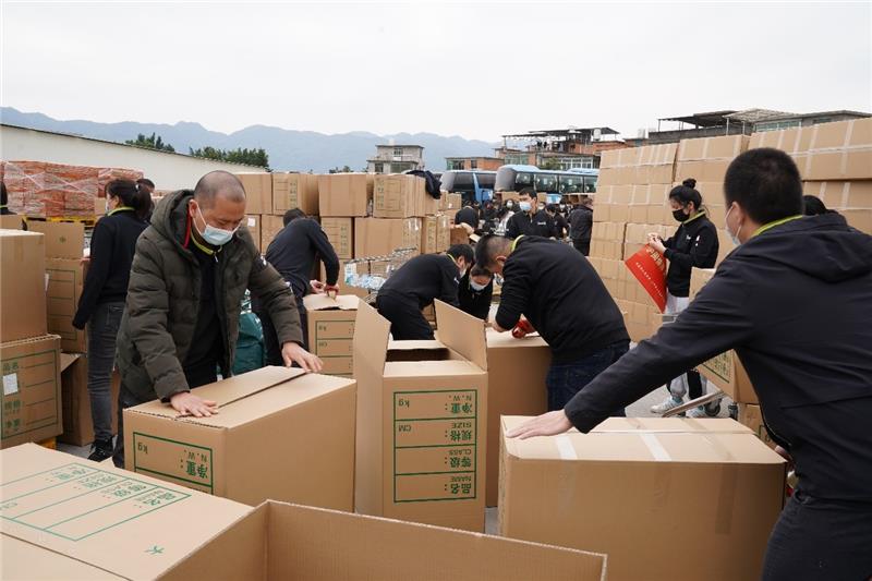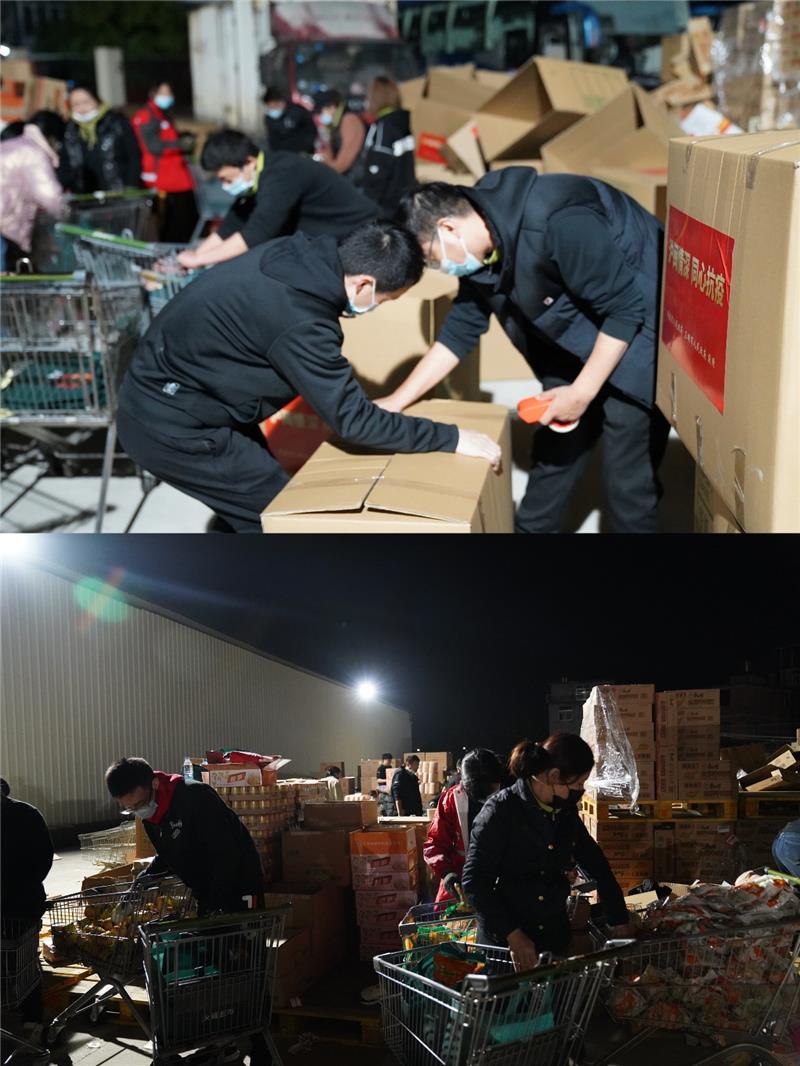 为保证支援物资尽快到位,永辉各方联动,十余小时完成90万件物资的调配并运抵永辉物流南屿基地。90万件物资,9000平方米空地,数十条生产线,近千名永辉人,争分夺秒、连续奋战27小时,终于完成了10万份商品的拆包、分装、打包工作。