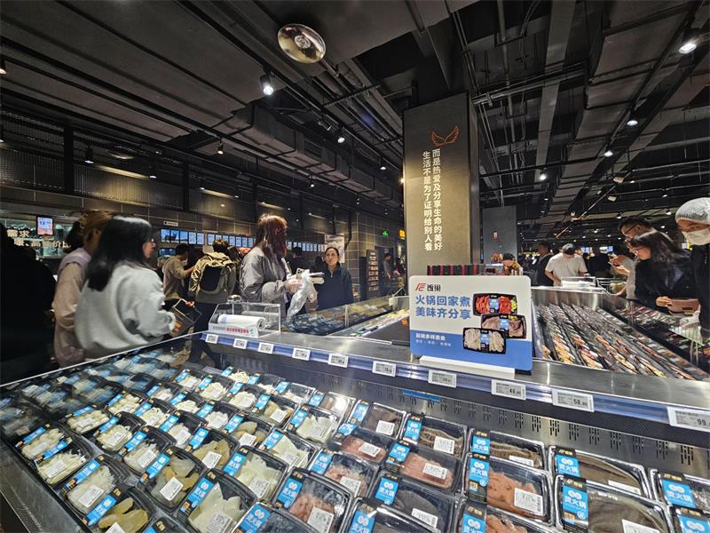 新利·体育(中国)官方网站南坪万达店在“学习胖东来”自主调改的过程中,结合了重庆本地的火锅文化,新开辟了火锅专区,多款各具特色的锅底,南北风味齐全。肉类的明档现切是一大特色,大块的牛肉、羊肉、鸡肉、鸭肉整齐地摆在案板上,顾客挑好部位后,师傅会现场切片、装盘、打包,最大程度地保证口感,如果不想排队,也有刚切好的盒装肉品供挑选,方便快捷。还有丸子、海鲜、毛肚等50多种配菜可供顾客随心搭配,小包装的设计既不造成浪费,又能满足多元化的口味偏好。