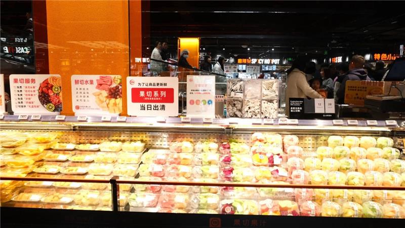 在永辉,鲜度与价格形成透明对话。货架上的折价标签不再是模糊的促销手段,而成为鲜度变化的品质坐标,商品经历价格调整时,时间与原因清晰标注,构建起透明的鲜度追踪机制。而针对果切这类“娇贵”商品,四小时后打上八折标签,六小时则进入六折区间,八小时后果断撤离货架。这种将时间价值化的管理机制,让消费者在挑选时多了一份安心。“上次买的打折的果切,口感依然清甜如初。”一位顾客分享道。
