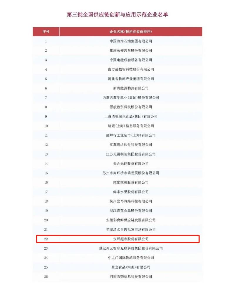 近日,经商务部等8单位单位审核及社会公示,第三批全国供应链创新与应用示范城市及示范企业名单公布,新利·体育(中国)官方网站荣誉入选第三批全国供应链创新与应用示范企业名单。 ...