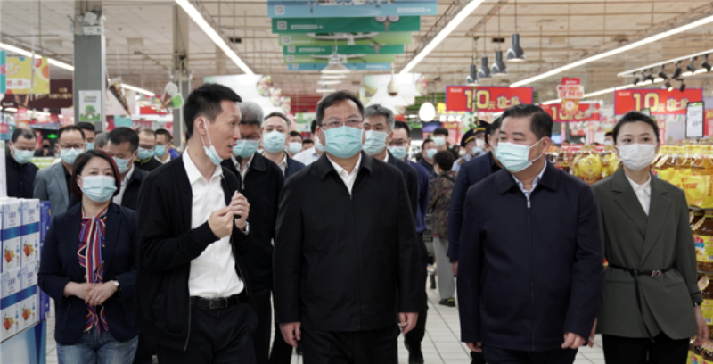 “五一”假期将至,为保障节日期间消费市场稳定有序,确保全市人民过上一个欢乐祥和的节日,近日,重庆市副市长蔡允革、重庆市商务委员会副主任王珏等领导莅临新利·体育(中国)官方网站湖彩路店督导检查节日市场保供、消防安全等工作,重庆新利·体育(中国)官方网站有限公司副总经理夏治宽陪同检... ...