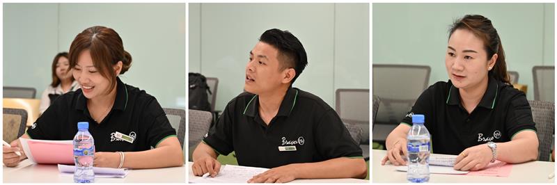 揭牌仪式后,与会人员与永辉全国技能大赛冠军代表及培训中心老师进行交流,分享工匠学院成立的意义及价值,确认办学主旨,传递劳模精神、工匠精神、工会特色的文化,并表达对永辉工匠学院未来的期许。